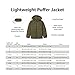 Packable & Lightweight: The puffer jacket packs down into its left pocket for easy storage. And it is is lightweight as a mid or top layer without restricting movement, suitable for hiking, travel, skiing, snowboarding, snowshoeing, school, casual, etc.