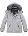 COZY FUR HOOD-The kids puffer heavyweight dress coat has a decent fleece lining hood with fur trim to help your little boy keep head cozy in the cold environment. And the fur trim is non-removable and washable design, shake it to return the previous fluffy shape.