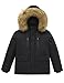 COZY FUR HOOD-The kids puffer heavyweight dress coat has a decent fleece lining hood with fur trim to help your little boy keep head cozy in the cold environment. And the fur trim is non-removable and washable design, shake it to return the previous fluffy shape.