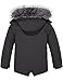 COZY FUR HOOD-The kids puffer heavyweight dress coat has a decent size hood with fur trim to help your little boy keep head cozy in the cold environment. And the fur trim is non-removable and washable design, shake it to return the previous fluffy shape.