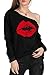 Pullover shirt, Wide neck, Long sleeve, Scribble lips pattern, Off the shoulder, Unfinished seams, Relaxed fit, Lightweight, Slouchy shirt, Hand wash cold