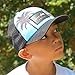 COOL DESIGNS- Teal blue boy’s trucker hat features palm trees giving it a Hawaii or California feel. Surfer boys and surfer girls love these kids surf hats!