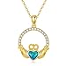 |GOLD CLADDAGH NECKLACE| The gold claddagh necklace with 0.62 inch(W) * 0.62 inch(H) emerald heart pendant, represents love, friendship, and loyalty – the heart represents love, the hands represent friendship and the crown represents loyalty.