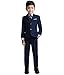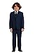 5 piece boys navy suit set includes:blazer jacket,dress pants,vest,white dress shirt & adjustable tie