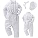 ♥*♥* 4 piece baby boy white outfit includes bodyshirt x1 + suspenders long pants x1 + hat x1 + bow tie