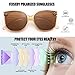 POLARIZED LENS - High quality solid color lenses, providing great clarity of vision, comfort and protection. Polarized sunglasses reduce glare reflected off of roads, bodies of water, snow, and other horizontal surfaces. Restore true color, eliminate reflected light and scattered light and protect eyes perfectly. Polarized sunglasses cut glare and haze so your eyes are more comfortable and you can see better.100% UV400, Protection Against Harmful UVA/UVB Rays.