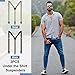 MATCHES ALL OUTFITS-These Y back design suspenders come with 6 clips and are made with the most comfortable elastic for daily comfort, and added leather crosspatch for that classic appearance.Suspenders are adjustable, one size fits all people, up to 52",width 1.4"(35mm).Easy to open clip, and enough strength to hold your pants up tightly,No more falling pants!