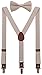 Simple and classic design,suspenders with brown leather,bronze clips and brown bow tie,nice looking and comfortable to wear.SUSPENDER AND BOWTIE ARE NOT SAME MATERIAL,CAN NOT 100% MATCH,THERE ARE SOME DIFFERNCES IN COLOR.