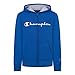 CHAMPION SCRIPT LOGO: A bold hoody designs featuring an oversized Champion script logo along the right sleeve.