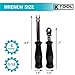 BUILT TO LAST: Brake pad spreader brake compressor tool pieces are constructed from chrome-vanadium steel (CR-V) for maximum strength and longevity; The brake caliper press brake caliper kit pushes the caliper piston onto the disc brakes without disc brake caliper parking brake mechanism; Caliper press brake pad tool kit provides access around emergency brake lever to service brake retaining spring