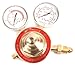 Regulators: Flame Tech FTPTK-18 Portable Torch Kit includes light-duty acetylene and oxygen regulators with an outlet and inlet connection, displays for delivery pressure and cylinder pressure, and a pressure adjusting screw