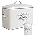 UNIQUE VINTAGE DESIGN: Accent your farmhouse kitchen and pantry design with these handcrafted and painted-to-perfection white enamel bread boxes with the word "Bread" in a lovely font.