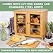 📐 CAREFULLY MEASURED AIR VENTS KEEP YOUR HOMEMADE BREADS FRESH FOR LONGER; All of the magnets are integrated into to the wood. There is even a magnet to hold the knife on the cutting board! Our corner bread box comes in a beautiful box that will make for a great housewarming gift or a great gift for ANY occasion!