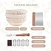 🍞13-PACK BREAD MAKING KIT: Attention bread bakers! Our bread baking kit includes a Round and Oval bread baskets, 2 liner/couche bread cloths, lame + 5 knives (bread scoring tool), 2mm thick silicone mat, bench scraper, dough/bowl scraper, stencils, linen bread bag, silicone pastry basting brush, cleaning brush, 5 measuring spoons.