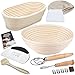 Sourdough Bread Baking Supplies: Our Banneton bread-making kit includes everything you need to make delicious spiral, hand-crafted loaves. With your purchase, you will get One 9" Oval basket, a 9" Round proofing basket, a Danish Dough Whisker to stir wet dough 3x faster than a traditional spatula, a Stainless-Steel Scraper for cutting and shaping your bread, a flexible Plastic Dough Scraper to get the dough out of the basket, and a Scoring Lame with 5 extra blades to help with dough expansion