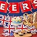 Banner design: the UK flag pennant banner has 10 pieces small flags, while the cheers British banner garland includes 2 pieces small flags and the letters of [Cheers], put together to make a long flag banner, you can adjust the distance between 2 flags