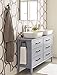 Versatile transitional style and intricate craftsmanship easily upgrades any bath