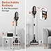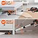 【400W Brushless Motor & 30Kpa Powerful Suction】This cordless vacuum cleaner features a 400W state-of-the-art brushless motor, it can reach 100,000rpm, generating 30Kpa/ 150AW strong suction. Easily sucks dirt, debris, dust, pet hair, cat litter, pet food, and other messes with ease. This cordless vacuum performs perfectly on hardwood floors, low and middle pile carpets, tile, marble, etc.