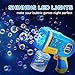🥳AUTOMATIC BUBBLE MACHINE GUN: 2023 New upgraded automatic bubble gun with 36 holes and led lights. Built-in bubble solution and battery, you don't need to dip in the bubble liquid again and again. Just press the trigger and this bubble gun can quickly generate more than 8000+ bubbles per minute.