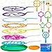 SUPER VALUE PACK. Our big bubble wands for kids Summer Bubble Wands Set includes 18 pieces of bubble wands in various colors, shapes and sizes, 2 bubble solution tray tools and 6 bags of concentrated bubble solution. Perfect for fun-filled family activities.