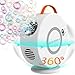 【Endless Fun with 20000+ Colorful Bubbles Per Minute】Our bubble machine can generate more than 20000+ bubbles per minute with 26 spinning wands, 2 fans & super built-in motor. Blow tons of bubbles faster, higher and farther even without wind,providing endless fun for kids.The LED lights also create a magical atmosphere at night.