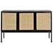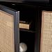 [DESIGNER DETAILS]: Add a chic touch of style to your home with this sideboard; Features a coastal-contemporary style with a black wood frame, natural rattan details on its doors, and black legs
