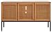 [DESIGNER DETAILS]: Add a chic touch of style to your home with this sideboard; Features a coastal-contemporary style with a natural wood frame, matching rattan details on its doors, and black legs