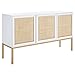 [DESIGNER DETAILS]: Add a chic touch of style to your home with this sideboard; Features a coastal-contemporary style with a clean white wood frame, natural rattan details on its doors, and gold legs