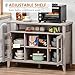 【Farmhouse Style for Multi-Purpose Use】The farmhouse buffet with storage is designed with hutches and shelves, which will be the best idea for coffee-obsessed to store wine bottles, wine glasses, serving trays and other bar items that can accommodate few decor pieces to add to the beauty, suitable for kitchen, dining room, living room, entryway use.