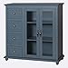 『Elegant & Antique Buffet Sideboard』: With rounded corners and smooth lines, this modern style sideboard creates rich visual diversity and fits a variety of styles of home decoration. 4 round feet add uniqueness to the kitchen cabinet, and 2 transparent doors enhance visual attractiveness.