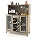 MULTIPURPOSE COFFEE BAR CABINET—This buffet cabinet with wine rack serves as a bar cabinet to store wine. In addition, this coffee bar can be used in the kitchen as a buffet sideboard for dishes and condiments, in the entrance as a doorway, or in the living room as a console or coffee bar.