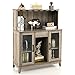 🍾【Gray Wine Cabinet】 -- Elegant style with glass door is classic and unique. Both aesthetic and practical to your any room, and it is match any decor style. It can be as buffet server control, cupboard table, wine cabinet, console table or bathroom cabinet