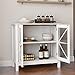 [Farmhouse & Classic Coffee Bar]: This coffee bar cabinet with storage is designed with an X-shaped sliding barn door for easy movement. The flexible barn door can slide to either side to create a closed storage cabinet. The classic white and wood grain table top combination presents a farmhouse contemporary design.