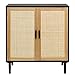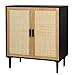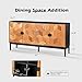 BOHO FARMHOUSE SIDEBOARD FOR HOME - Aesthetic and practical storage cabinet featuring a realistic-looking rattan design. This buffet cabinet boasts 2 adjustable storage shelves, a hidden golden handle, and a thickened wood board for added rustic style and stability.