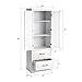 QUALITY FURNITURE: Made of engineered wood with a white painted finish. Includes 2 doors with glass panels, 2 adjustable shelves, roomy drawer and black metal pulls