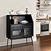 LARGE STORAGE SPACE - Measuring 14.9" D x 34.3" W x 35.4" H, this storage cabinet provides ample space for storing items of different heights. The two adjustable shelves can accommodate tall wine bottles, low plates, and keep small items away from kids and pets.