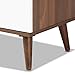 Assembly required, this sideboard measures 45.7" x 15" x 34"; Plastic and rubber bases on items can discolor wood