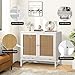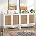 BOHO FARMHOUSE SIDEBOARD FOR HOME - Aesthetic and practical storage cabinet featuring a realistic-looking rattan design. This buffet cabinet boasts 2 adjustable storage shelves, a hidden golden handle, and a thickened wood board for added rustic style and stability.