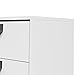 Cut-out drawer pulls in place of handles. Drawers with metal runners.