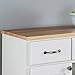ALL IN THE DETAILS: Notice how the decorative fretwork over inset mirrored glass brings out the beauty of the oak tone top—for the very best in French country-inspired style by the table