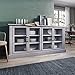 [FRAMED CABINETS] Cabinets framed with glass doors help you showcase collectibles, cherished keepsakes, and decorative dishware. Metal hardware on the cabinets lends a stylish accent.