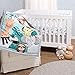 The fitted crib sheet has the perfect universal fit, designed for a standard 28” x 52” crib mattress with snug fitting all around elastic with an allover pattern of bright, colorful jungle animals and leaf clusters