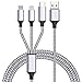 Premium Material : Multi phone charger designed and built with Nylon Braided materials, no tangle, which is made of high purity copper core and smart intelligent chip with overcharge protection, stable current protection. Each cables has been tested with 20000+ times bend lifespan and strong bearing capacity. Comes with soft surface.