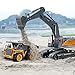 [Improve Hand-eye Coordination]: The excavator toy can rotate 360 and freely adjust the digger arm and shovelhead bend, perfect work with the crane to transport the concrete blocks.