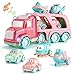 5 in 1 Macaron Truck Package: This transport truck toy set includes a larger carrier truck (16.9*5.5*7.1in) and 4 colorful mini car, airplane and helicopter. Unique macaron colors/cute cartoon expressions/car's decoration and prints/rotating aircraft fan blade will definitely attract boys and girls.