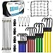 【 Assorted Sizes】3 Pcs 40-inch cords, 3 Pcs 32-inch cords, 4 Pcs 24-inch cords, 6 Pcs 18-inch bungee cords, and 6 Pcs 10-inch mini bungee cords with hooks, tarp clips, canopy ties, and cargo net