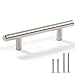 BEAUTIFUL LOOK: These cabinet handles have a wide appeal across a range of kitchen cabinet doors and drawers. The Satin Nickel handles have a clean and timeless look that works with farmhouse, vintage, traditional and transitional styles. Can be used for large or small doors and drawers. LENGTH: Overall Length: 5-1/4 inch, width: 3/8 inch - Hole Centers / Spacing: 3" - Projection: 1-1/8 inch