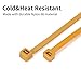 【Zip ties Assortment】International Standard Specifications:Multipack of 500 PCS 4+6+8+10+12 inch Gold Cable Ties (100 PCS Of Each Size). Width 2.5mm/0.1inch-18lbs, 3.6mm/0.14inch-40lbs, 4.8mm/0.19inch-50lbs.