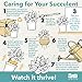 WATERING NEEDS | Succulents are very sensitive to overwatering, and damp soil can cause root rot Dry out soil completely between waterings Recommended amount is once every two weeks Tip: top inch of soil should feel dry before watering again