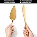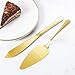 Widely Use: A gold cake knife 13.0" and a gold cake server 10.43" are packaged in a exquisite gift box. Perfect for serving cake, quiche, pizza, lasagna, pie. For you to add more festive atmosphere in every special day: Wedding, Birthday, Baby shower, Housewarming Graduation, Thanksgiving etc.